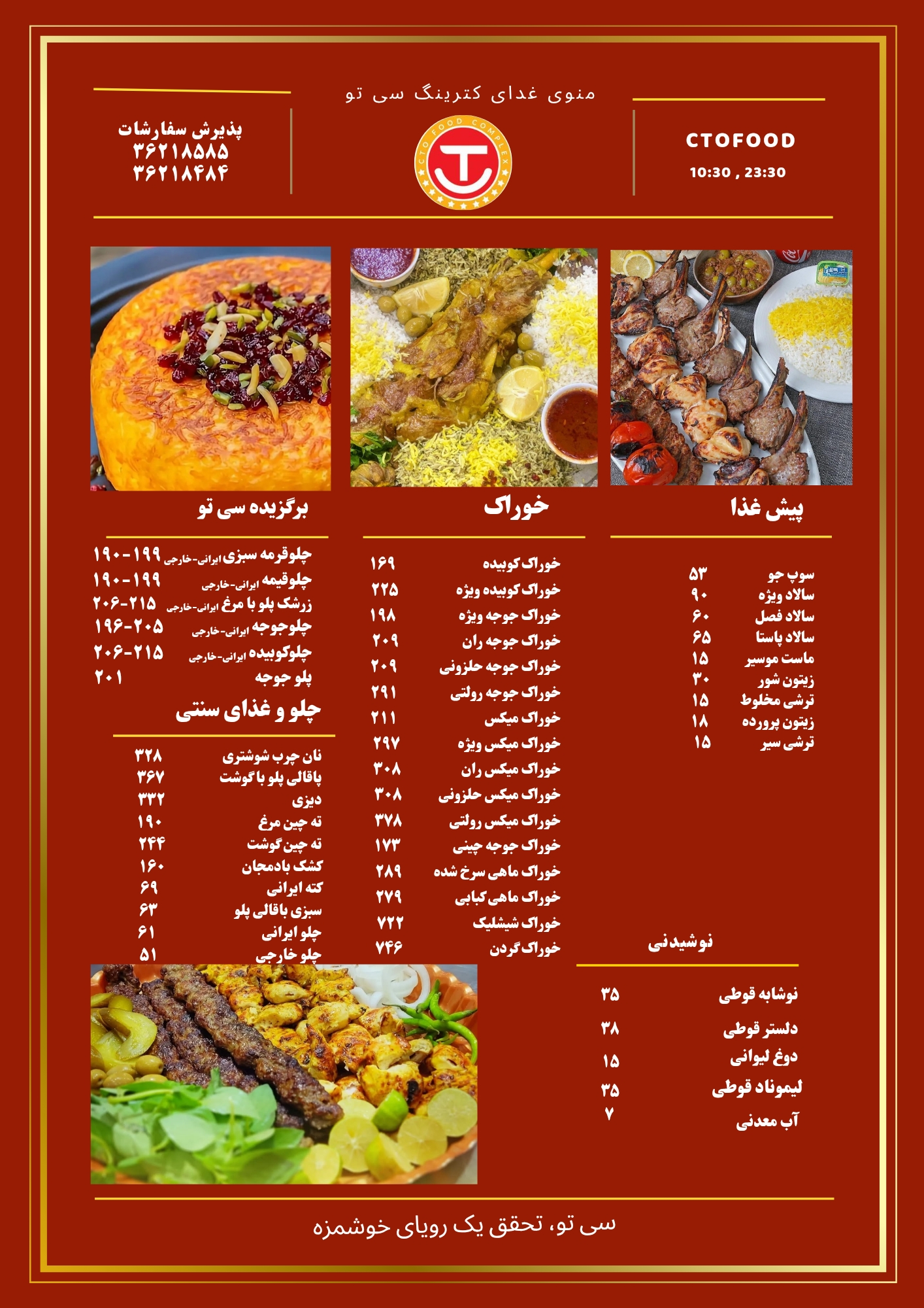 برای دریافت منوها روی گوشی خود نیز میتوانید عدد 8 را از طریق پیامک به شماره